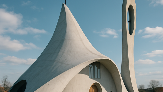 Vygeneruj obrázek na téma: Moderní sakrální architektura v Česku a kostely z jiného světa
