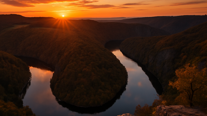 Protože každý bod má svůj charakter. Některé vyhlídky ti naservírují barvy jako malířskou paletu, jiné obrysují siluety hradů a skal, které vypadají jako grafitové skici na ohnivém pozadí. A pak jsou místa, kde hru světla podtrhne voda — řeka, jezero nebo údolí, co se třpytí. Tyhle kombinace dělají z fotografií příběhy. Chci, abys po přečtení věděl, kam jet, co hledat a co fotit, abys měl doma snímky, které lidi zastaví scrollování.